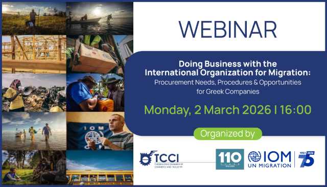Ο τίτλος της διαδικτυακής εκδήλωσης είναι ο εξής: «Συνεργασία με τον Διεθνή Οργανισμό Μετανάστευσης: Ανάγκες, Διαδικασίες και Ευκαιρίες Προμηθειών για Ελληνικές Επιχειρήσεις- Doing Business with the International Organization for Migration: Procurement Needs, Procedures and Opportunities for Greek Companies».