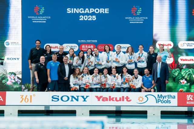 Παγκόσμια Πρωταθλήτρια για δεύτερη φορά «στέφθηκε» η Ελλάδα στο πόλο Γυναικών, αφού το απόγευμα της Τετάρτης 23 Ιουλίου 2025 επικράτησε εμφατικά με σκορ 12-9 επί της Ουγγαρίας στο τελικό, που διεξήχθη στο Aquatic Center της Σιγκαπούρης.Φωτογραφία- Πηγή-Image Source: ©Ελληνική Κολυμβητική Ομοσπονδία/World champion Greece/Aniko Kovacs/World Aquatics