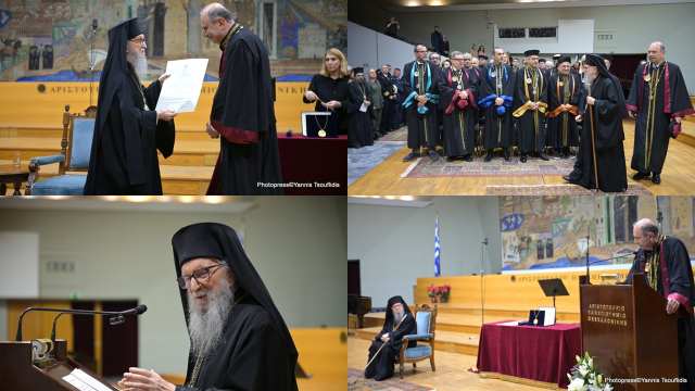 Ακολούθησε η προσφώνηση του τιμώμενου από τον πρύτανη του ΑΠΘ- καθηγητή, Κυριάκο Αναστασιάδη, ο οποίος τόνισε ότι το πανεπιστήμιο τιμά μια διαδρομή ανιδιοτελούς προσφοράς στο συνάνθρωπο και μια εξέχουσα προσωπικότητα της ορθοδοξίας και του οικουμενικού ελληνισμού με πολυσχιδή παρουσία- πνευματικό έργο.